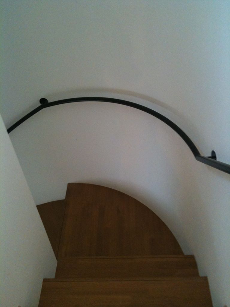 そこにスチールの手すりがクアッと曲がっていくのがすごく良い。
